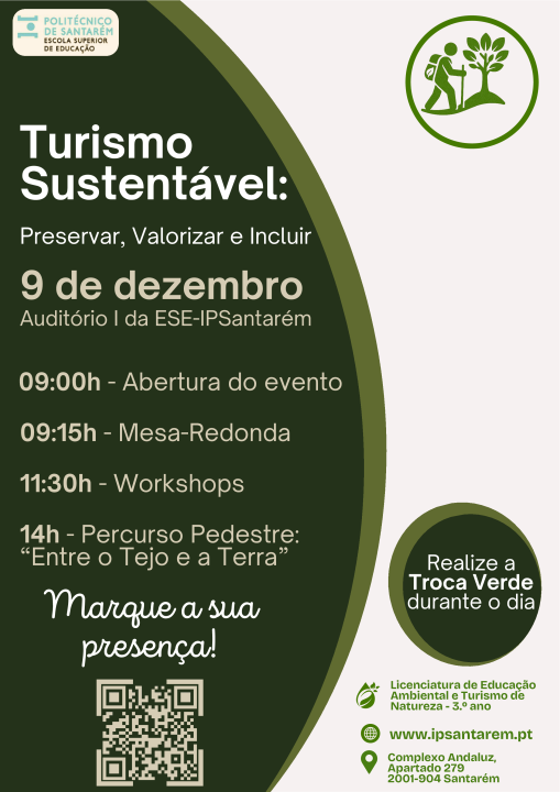 A Escola Superior de Educação do IPSantarém convida à inscrição no evento “Turismo Sustentável: Preservar, valorizar e incluir”, a realizar a 9 de dezembro de 2025, em Santarém.