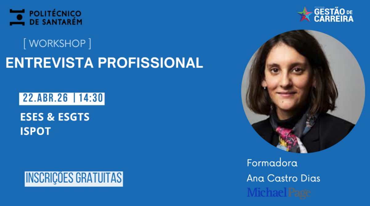 Inserido no programa de Gestão de Carreira do Politécnico de Santarém, convidamos os/as estudantes da Escola Superior de Gestão e Tecnologia a participar no workshop: “Entrevista Profissional”.