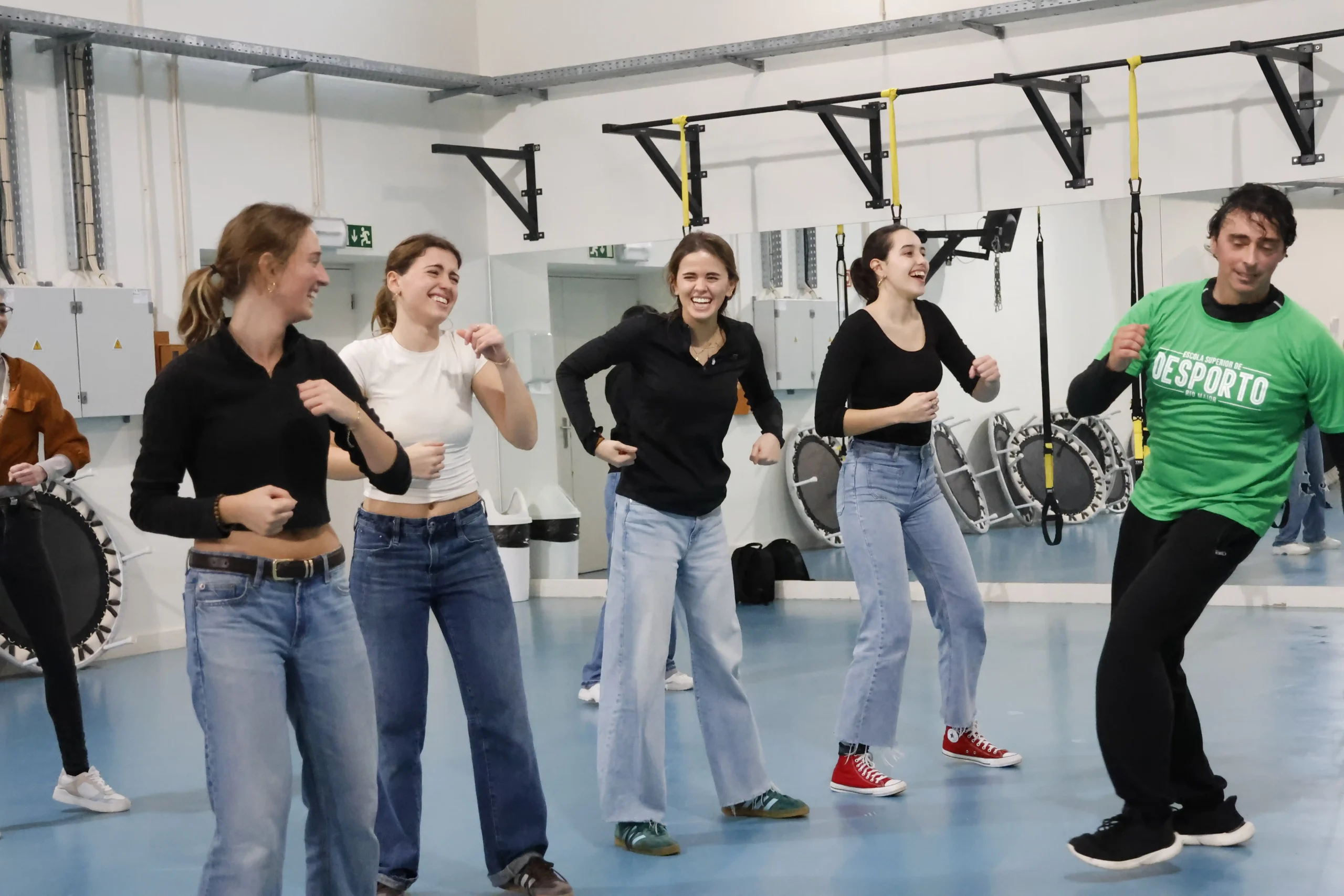 No período da tarde, a comitiva deslocou-se à Escola Superior de Desporto de Rio Maior, unidade orgânica do Politécnico de Santarém, para uma vertente mais dinâmica, onde as atividades físicas, dinâmicas de grupo e jogos, promoveram o bem-estar e o espírito de equipa, fortalecendo os laços entre estudantes de diversas nacionalidades num ambiente de partilha multicultural. 🏃♂️🤝🌍