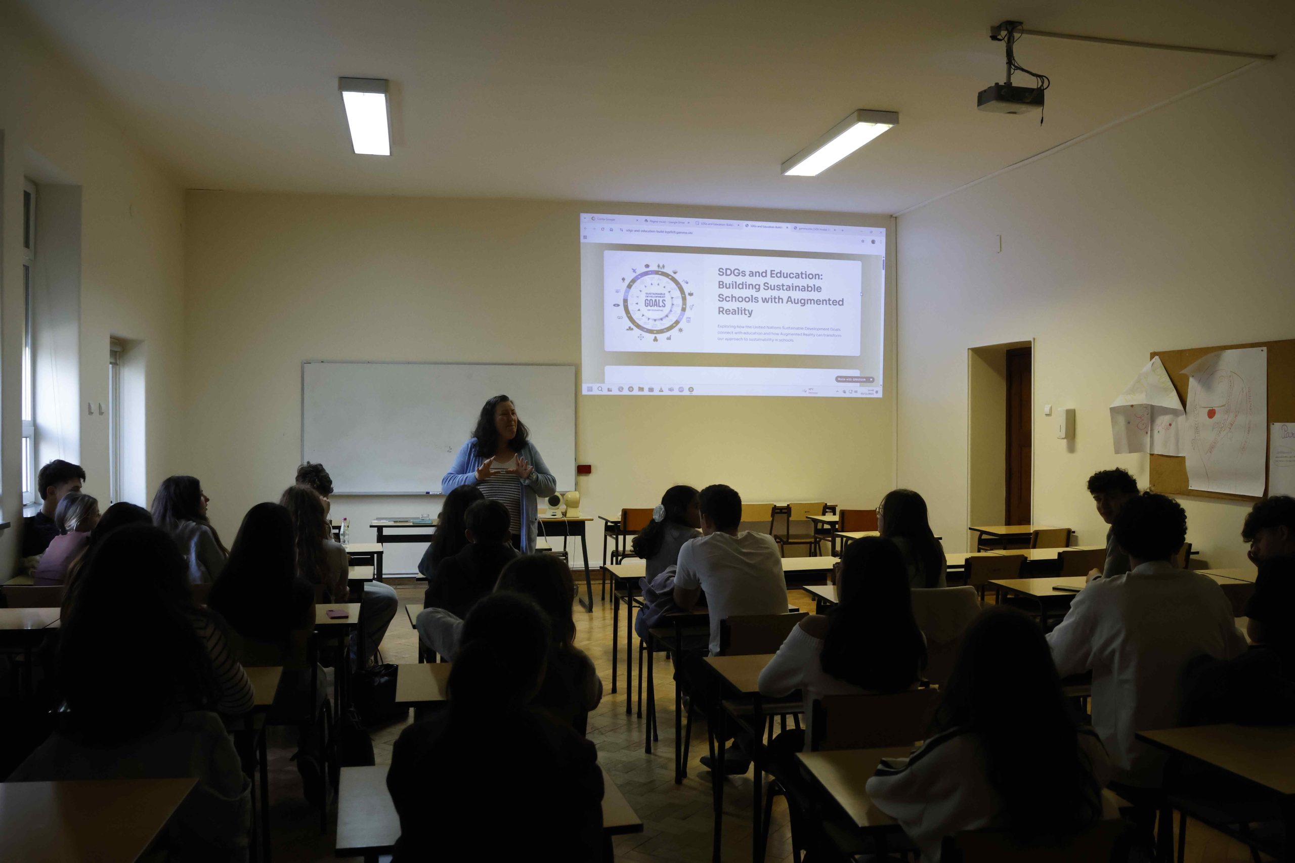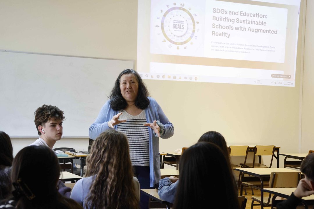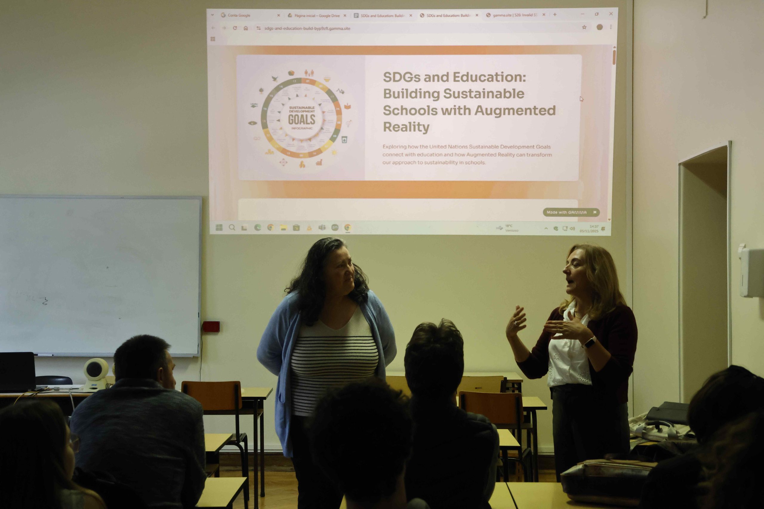 O tema “Sustainable Development Goals (SDG) and Education: Building Sustainable Schools with Augmented Reality”, foi dinamizado pelos professores Cidália Marques e João Cabral com a cooperação da professora Cristina Novo .