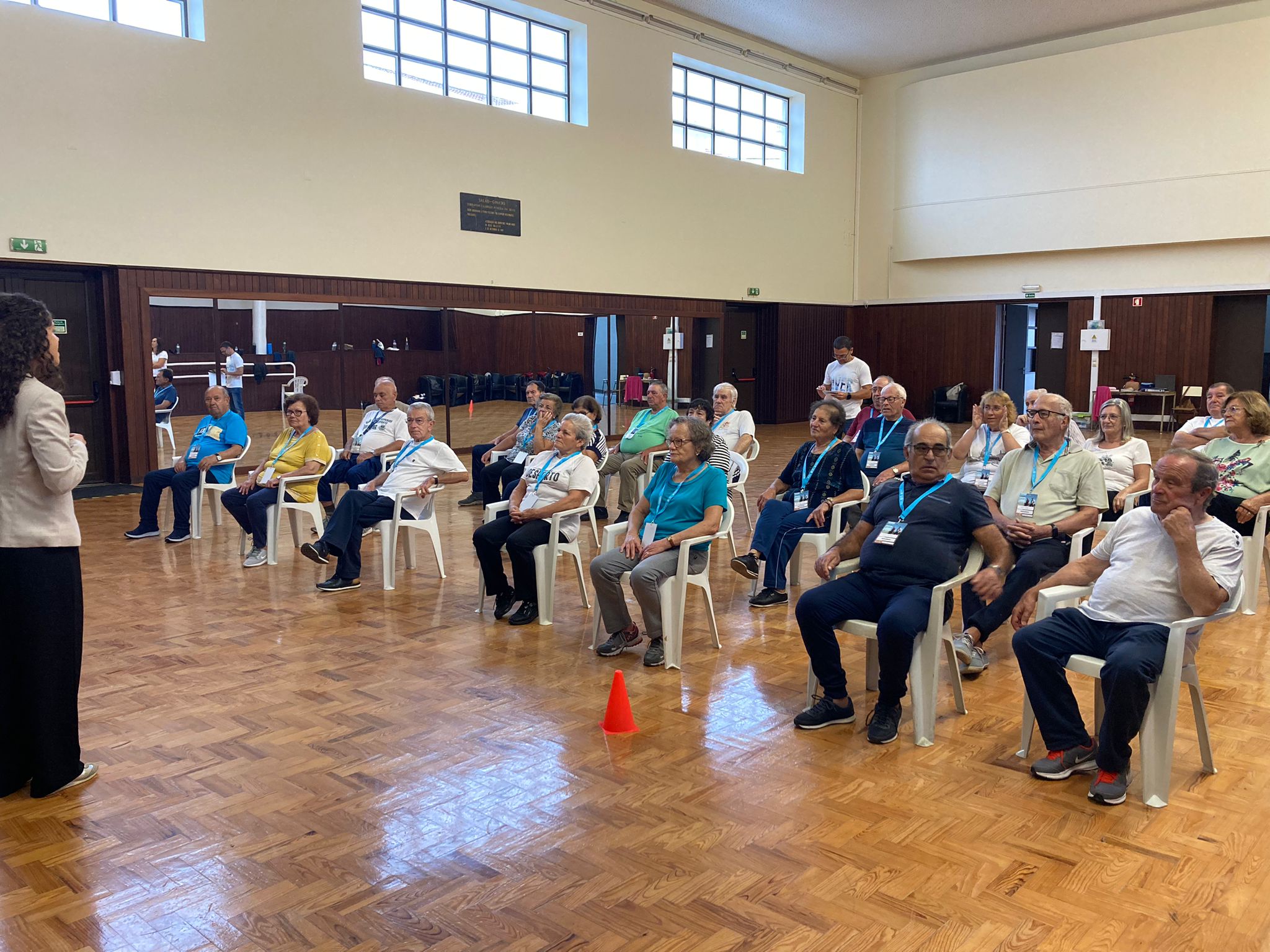 Foram recentemente assinaladas duas datas importantes com os participantes. No dia 11 de outubro, numa sessão fora do formato habitual, foi assinalado o Dia Mundial da Saúde Mental, com uma sessão de “Terapia do Riso”, que ficou ao cargo da Maria João Madeira, Técnica Superior da Escola Superior de Desporto de Rio Maior – ESDRM, com atividades que para além do “riso”, trouxeram muita alegria e diversão aos participantes. E no dia 16 de outubro, numa sessão normal, foi assinalado o Dia Mundial da Alimentação, com uma apresentação e sessão de esclarecimentos, dúvidas e respostas, sobre Alimentação Saudável, que ficou ao cargo de Ana Santana, Nutricionista do Município de Rio Maior , na qual também foi distribuída informação sobre alimentos e receitas saudáveis para os participantes fazerem em casa.